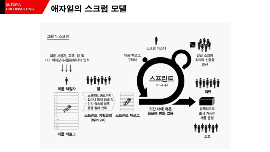 - 개발 : '스프린트'라고 불리는 여러 반복 작업을 거치며 고객 요구사항에 맞는 제품 개발